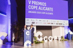 El evento, presidido por el alcalde de Alicante, Luis Barcala, y el presidente de la Diputación, Toni Pérez, sirvió también para presentar el Anuario COPE 2025, que recoge los hitos más relevantes del año y refuerza el papel de la emisora como altavoz del talento y la innovación en la provincia.